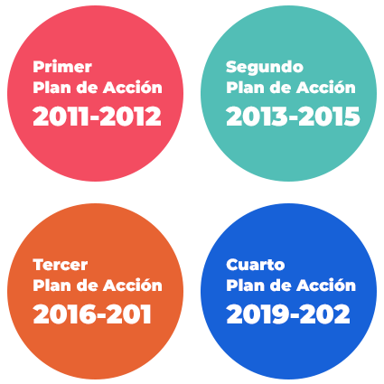 Los países miembros de la AGA deben diseñar e implementar un Plan de Acción Nacional, que tiene una duración de 2 años. Los Planes se integran por proyectos o compromisos específicos que fomenten los principios de gobierno abierto.