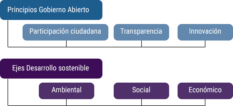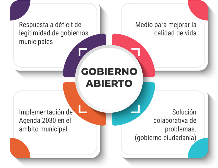 La literatura sobre el tema nos indica que el Gobierno Abierto descansa en cuatro pilares: transparencia, rendición de cuentas, participación ciudadana e innovación. De acuerdo con la Guía de Gobierno Abierto para Municipios y Alcaldías elaborada por el INAI y el SNT, así como el Mapeo de Buenas Prácticas de gobierno abierto en el ámbito municipal desarrollado por PNUD estos se definen: