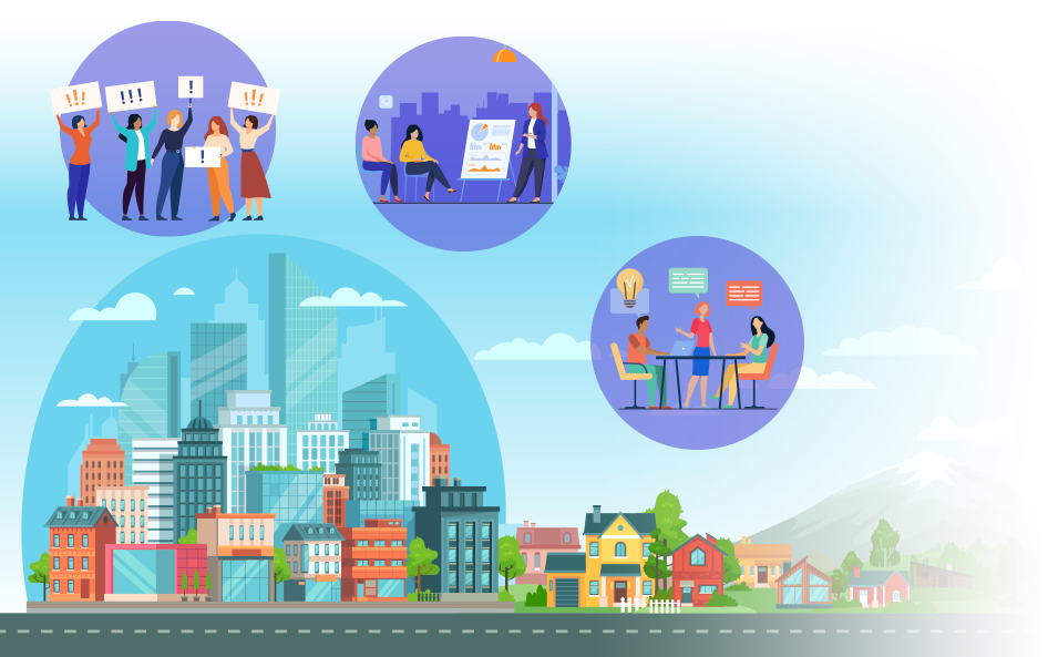 - Participación ciudadana: Fomenta los instrumentos, prácticas y dinámicas mediante las cuales las demandas y las necesidades de la ciudadanía y de los grupos sociales puedan ser incorporadas en los procesos de diseño, decisión, implementación y evaluación de las políticas públicas en el ámbito municipal. Construyen espacios de interlocución que pueden incrementar la capacidad de incidencia social en la adopción de decisiones colectivas en contextos democráticos.
